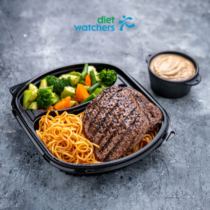 شريحة لحم مشوية مع الفطر وصلصة السباغيتي والخضروات