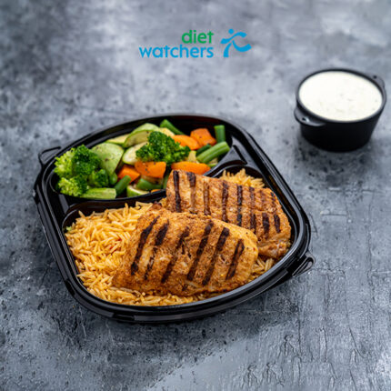 سمك مشوي بصلصة الليمون مع الأرز والخضار